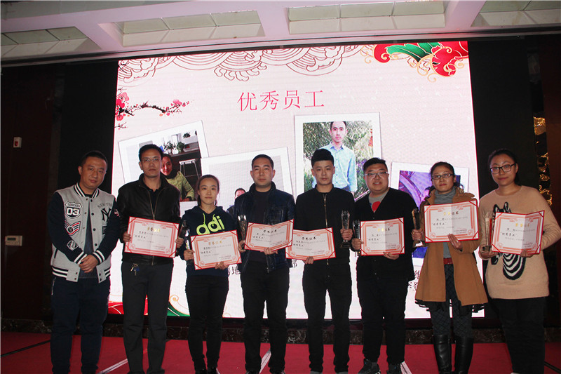 甘肃中集实业集团2016年春节团拜会暨表彰优秀大会于2016年2月5日下午在金帝国酒店一楼宴会厅拉开了序幕。大会伊始,由总裁助理董广科宣读《关于表彰2015年度优秀管理者、优秀员工及优秀团队的决定》,并由董事长周吉杰、副总裁周启涛、周启滨向获得优秀经理、优秀员工及优秀团队荣誉的员工颁发证书、奖杯等,对员工一年来的辛苦工作给予了鼓励与高度的认同。